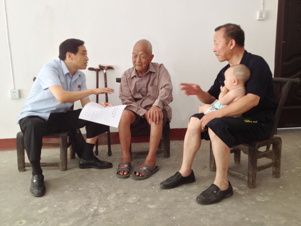 “为我的事儿光让领导们费心费力,感谢党,感谢法官……”7月29日,101岁的老人杨某颤巍巍地握着城关法庭副庭长胡克文的手,连声道着感谢。这是胡克文当天回访杨某,解答了杨某的疑惑发生的一幕。