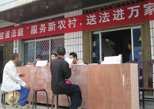 自我院开展“服务新农村,送法进万家”活动以来官渡人民法庭结合该实际情况,迅速行动起来,走上街头开展法律宣传、深入边远村组巡回就地办案、邀请乡村干部参与诉讼调解,让广大人民群众在家门口就享受到了诉讼的便利,受到当地干部群众的好评。