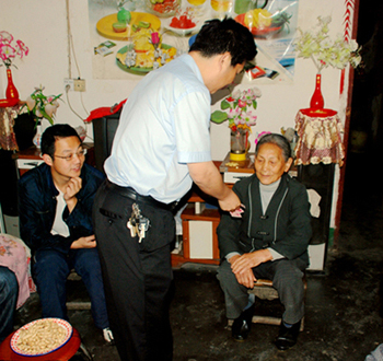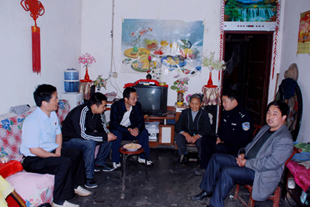 双台人民法庭将构建和谐农村作为工作着力点,大力加强诉调对接工作,借助社会力量化解矛盾平息纷争,为党的十八大胜利召开营造和谐稳定的社会环境。今年1-5月,该庭民事案件调撤率达到 93%。图为5月30日,该庭邀请乡综治办、派出所、村委会等人员深入当事人家中进行调解,妥善化解了一起邻里间的伤害赔偿案件,庭长柯双喜将被告交付的赔偿款送到原告手上。