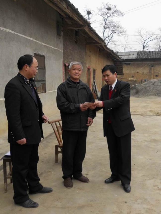 3月14日上午,田家法庭庭长张友山和副庭长邵忠明等一行人来到竹山县深河乡双湾村5组村民叶绪保家,为他们送去了7000元的案件执行款。