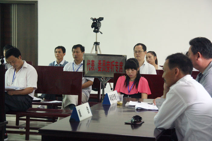 上午9时,10名人大代表、政协委员走进竹山县得胜人民法庭旁听了一起民事案件的审理。